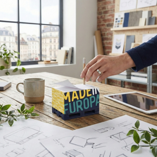 Ce bloc cube est un support à la fois pratique et original, conçu pour un usage quotidien au bureau comme pour des opérations de communication.