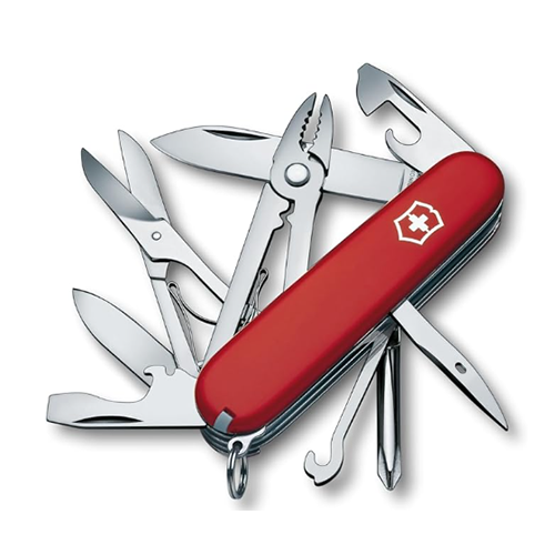 Le couteau suisse Deluxe Tinker de Victorinox est un outil polyvalent incontournable pour les passionnés d'activités en plein air, grâce à ses lames efficaces, ses ouvre-boîtes et ses tournevis fonctionnels.