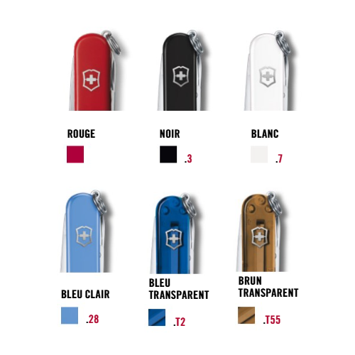 6 coloris sont proposés en plus du rouge iconique de Victorinox.