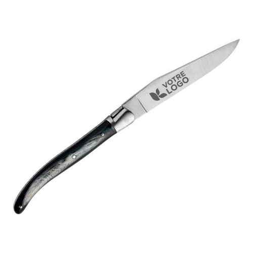 Vous souhaitez commander ce couteau à titre personnel dans des quantités moindres ? Consutez sur amikado notre page Couteau Laguiole Antan en corne personnalisable.