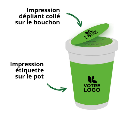 Il est possible de personnaliser les Ecocups même à partir d'un petit nombre de pièces. Il est possible de personnaliser la banderole ainsi que les instructions de plantation dans le livret personnalisé en impression 4c et on peut choisir librement les semences.