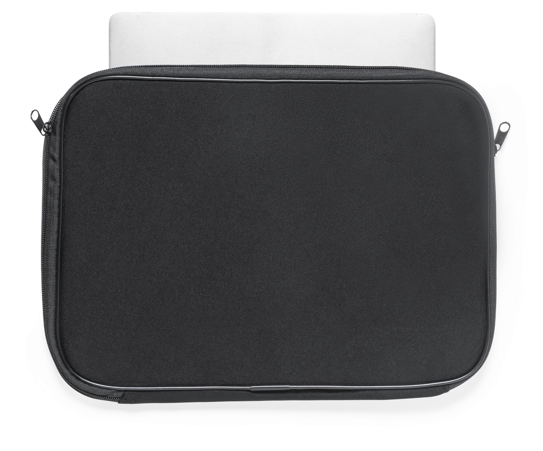 Housse pour ordinateur portable, en softshell résistant. De couleur noire élégante, avec intérieur rembourré. Fermeture zippée assortie avec double poignée. Pour ordinateur portable ou tablette jusqu'à 15 pouces.