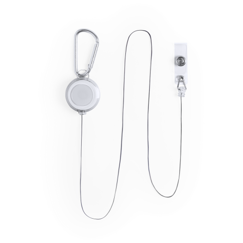 Porte-badge extensible au design sobre, avec un crochet pour accrocher le badge et un mécanisme extensible jusqu´à 65 cm.