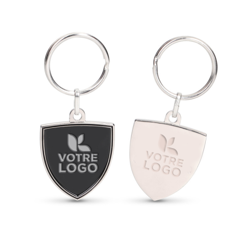 Ce porte-clés en fer, avec une finition nickel brillant, est disponible en dimensions sur mesure, avec une épaisseur de 1,5 à 1,8 mm. Il est doté d’une attache par anneau brisé rond de 25 mm de diamètre par défaut.