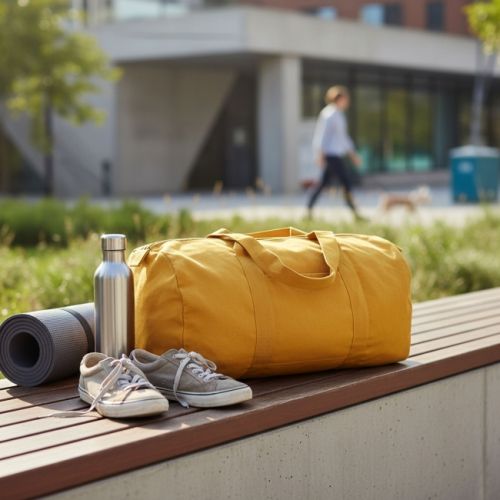 Le modèle HIGGINS est un sac de sport de type polochon, pensé pour allier simplicité, praticité et engagement responsable.