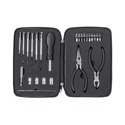Comprend un ensemble de tournevis de précision, une poignée multifonction, des embouts interchangeables, des tournevis plats et en étoile; têtes de tube et pinces.