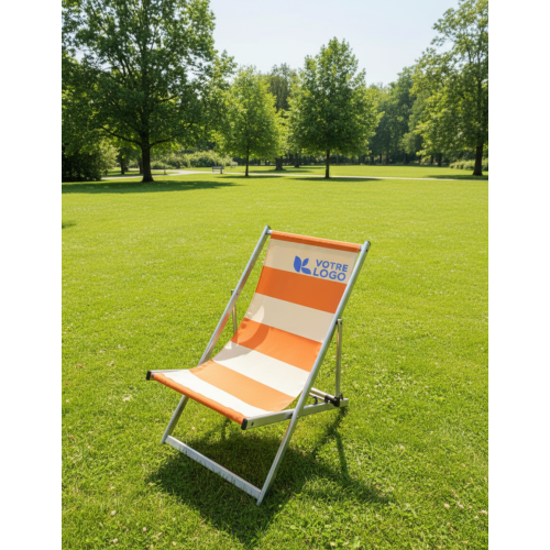 Un transat au look moderne, idéal pour allier détente et communication visuelle dans des espaces privés ou professionnels.