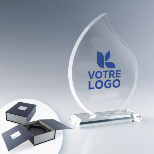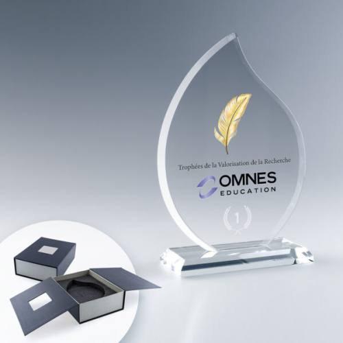 Le Trophée Flamme en Verre est une récompense raffinée, gravée au laser avec une précision exceptionnelle.